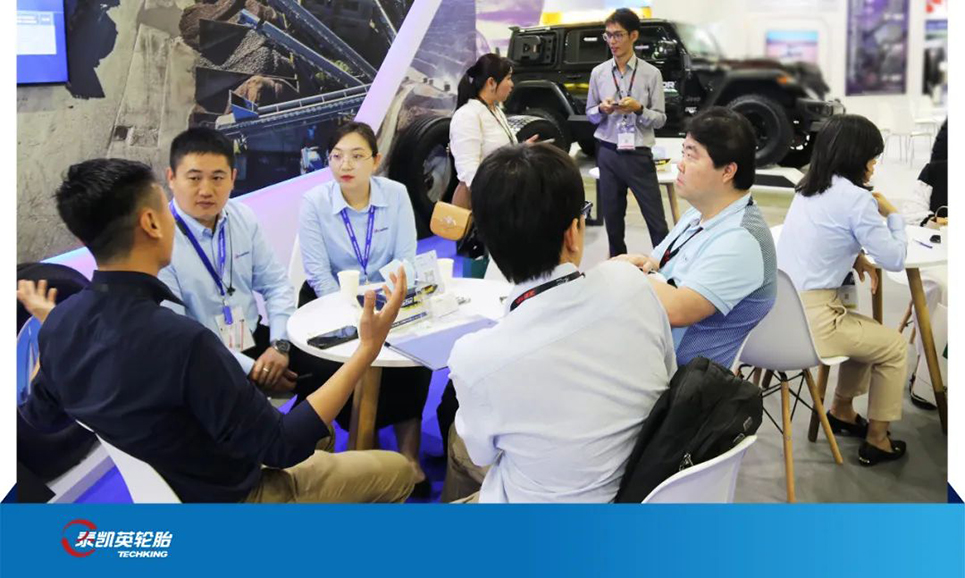 作为致力于成为全球矿山建筑轮胎领先品牌的泰凯英,携5款适配当地工况和使用需求的各型轮胎,亮相了本次展会。展会期间,展台观众络绎不绝,对泰凯英的产品和服务给予了高度认可。